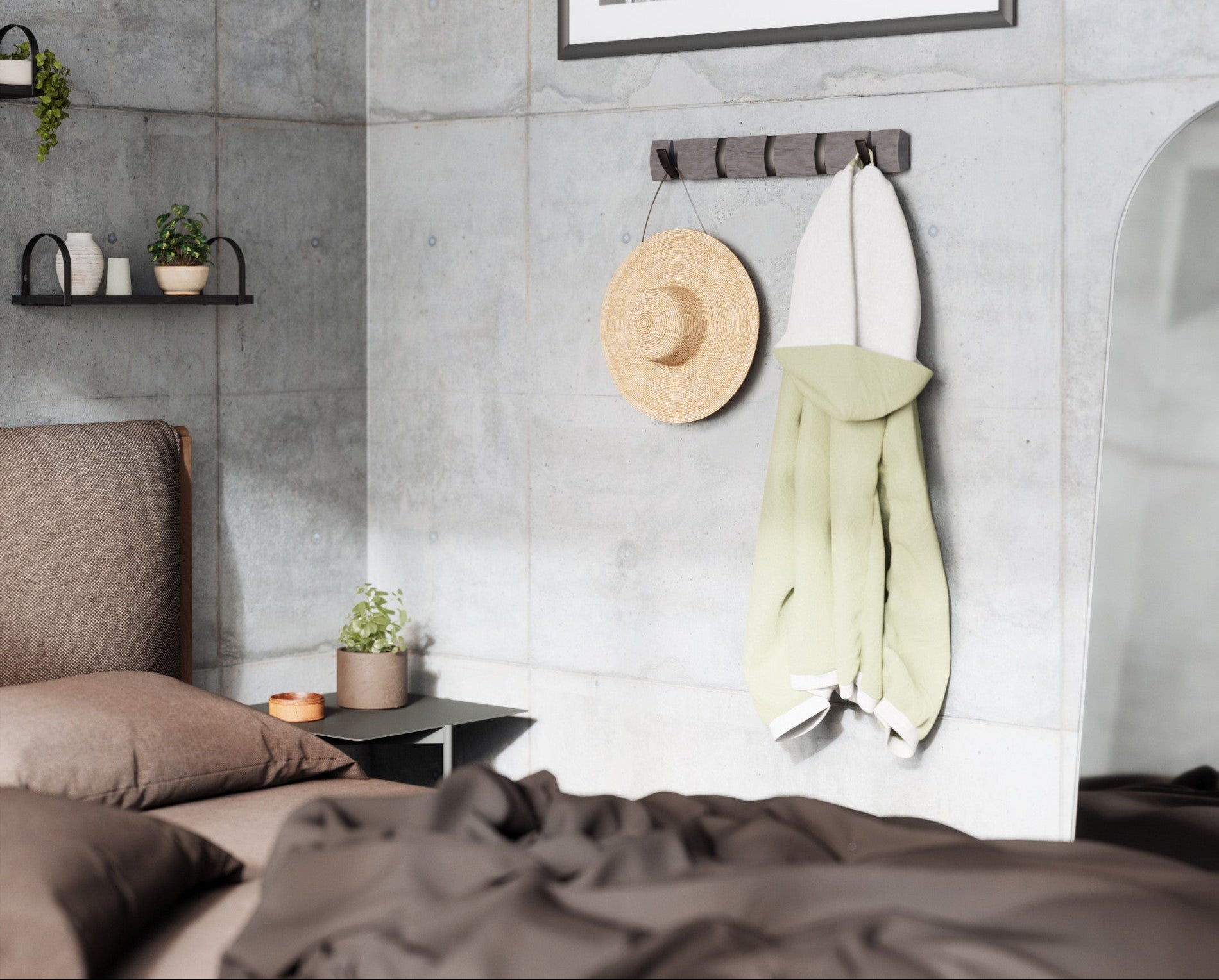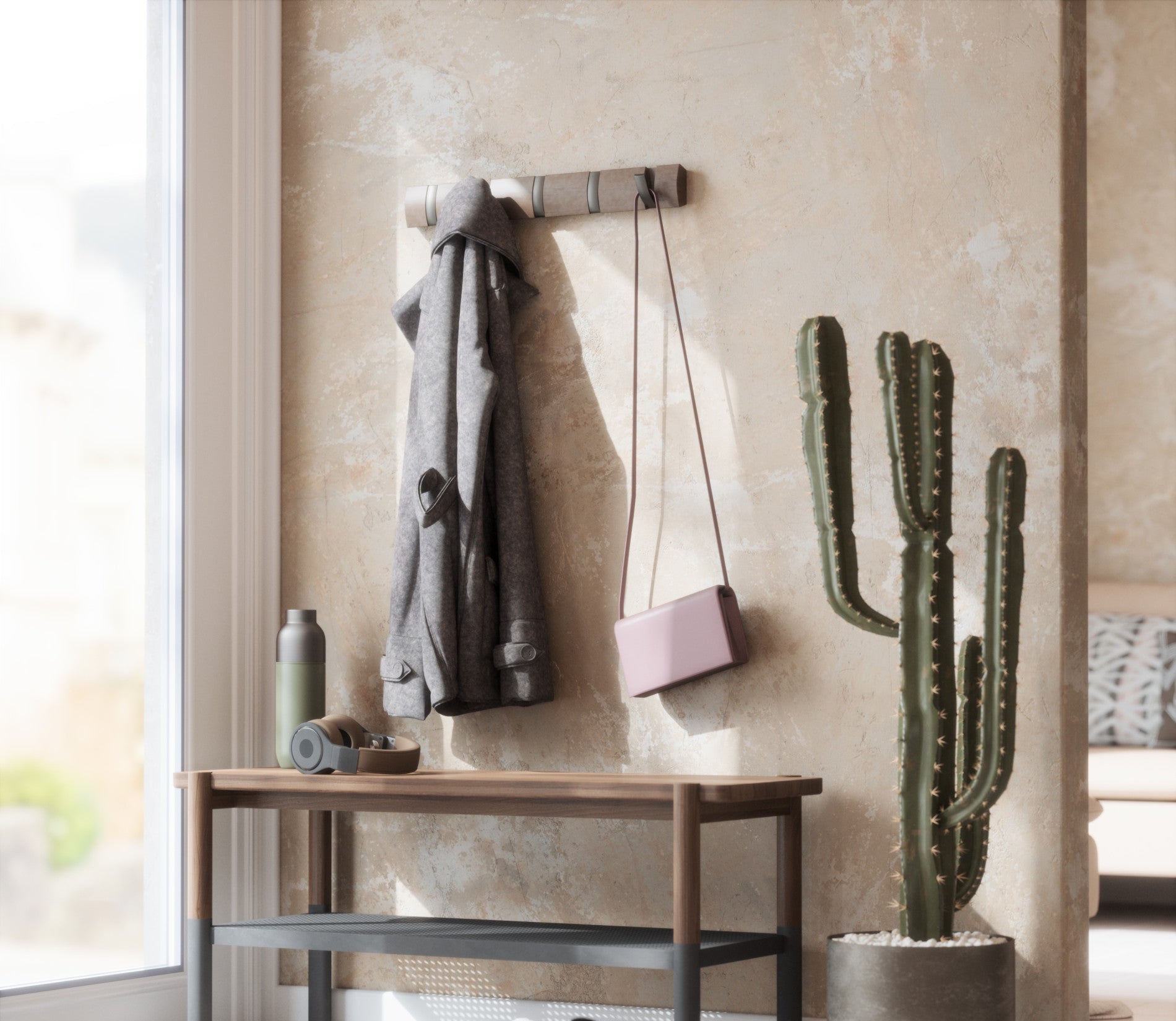 Multi-Purpose Wall Mounted Hanger: More than just a coat rack, Umbra Flip is a unique wall mounted rail that features retractable hooks for hanging a variety of items including coats, scarves, purses, umbrellas, towels, clothing and more