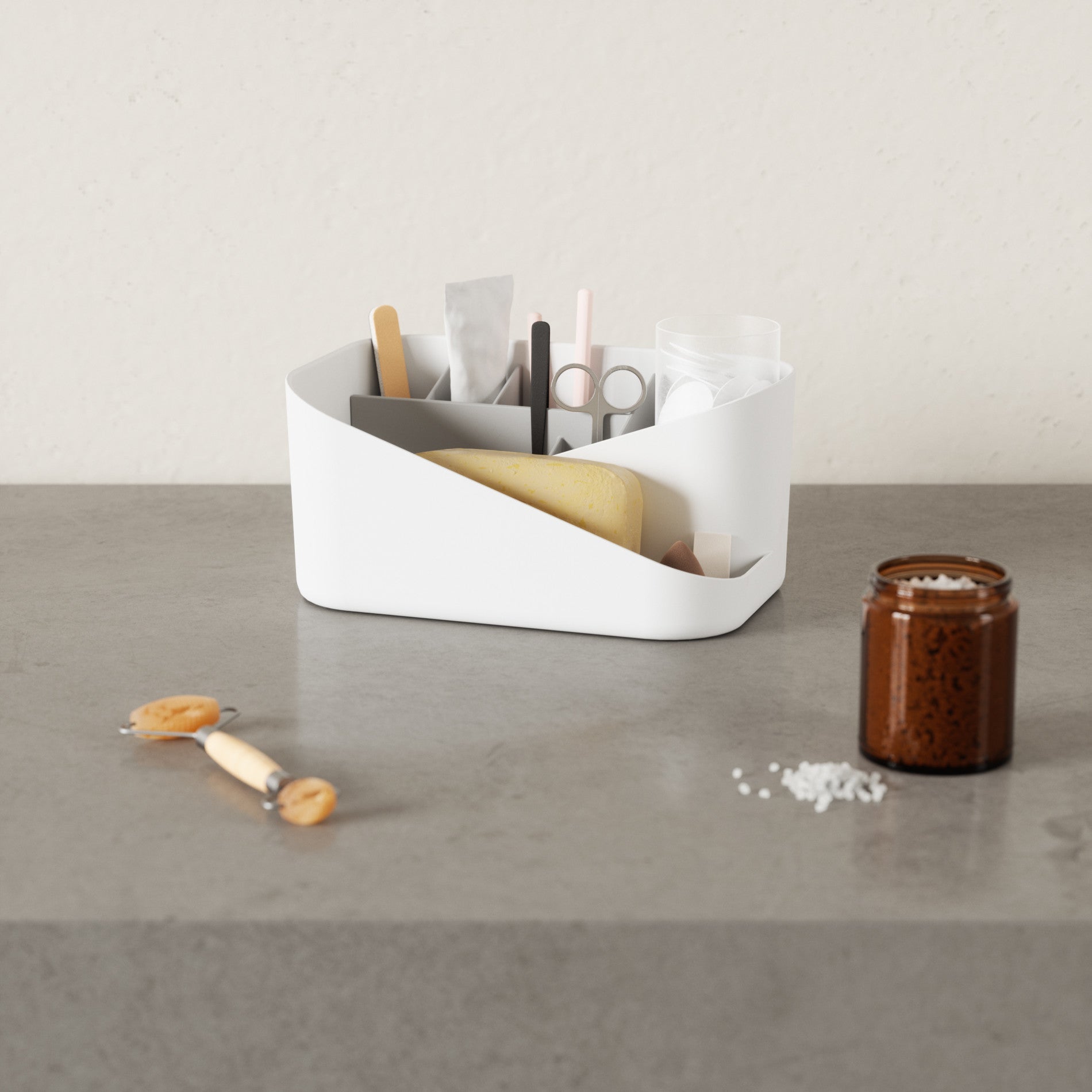 Instantly de-clutter your space with Glam Cosmetic Organizer. This makeup organizer provides storage for your everyday makeup essentials with different sized storage compartments and a removable insert. With an open-top design, Glam provides easy-access storage, while being able to showcase all of your products. Glam can be placed under the sink or on your vanity or countertop for space-saving organization. Pair Glam with its coordinating Hair Tool Organizer for a complete set and great gift. Measures 10.5 x 6.75 x 5' (27 x 17 x 13 cm). ⓘ Plastic material can react to chemicals such as alcohol, acetone, benzene, toluene and cause cracks and discoloration. Clean with water only.