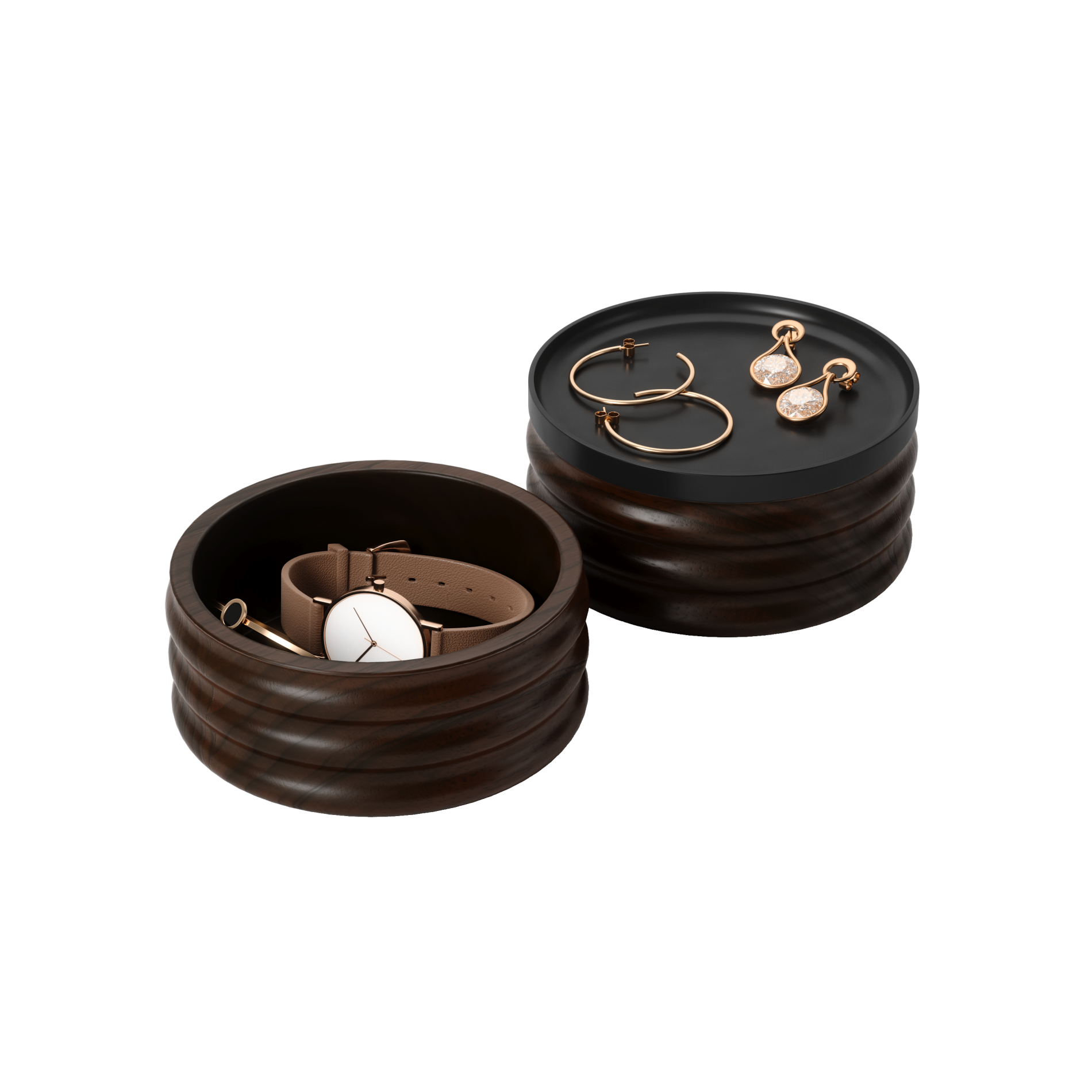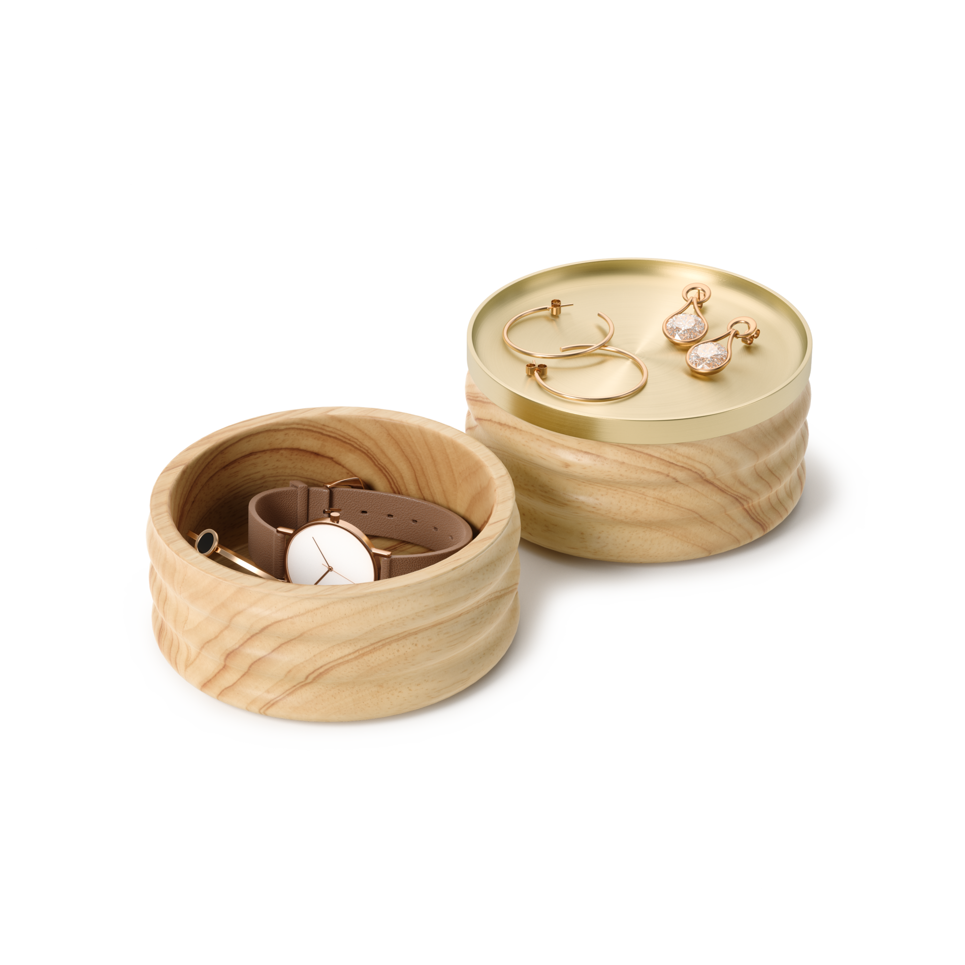 Featuring two tiers that can be stacked or separated, this jewelry box is the perfect addition to help store and organize your accessory collection. The Tesora’s plated metal lid doubles as a tray to store and display easily accessible accessories. Its two-tiered stacking design makes this a versatile storage solution that can be stacked on top of one another to save room or kept separately. Its perfect size makes it easy to place by your bedside table for easy access and to ensure your jewelry does not get lost. Wood is a unique natural material with variations in tone, texture, and grain. The product may vary from our imagery. ⓘ For Best Care: wipe with a clean damp cloth